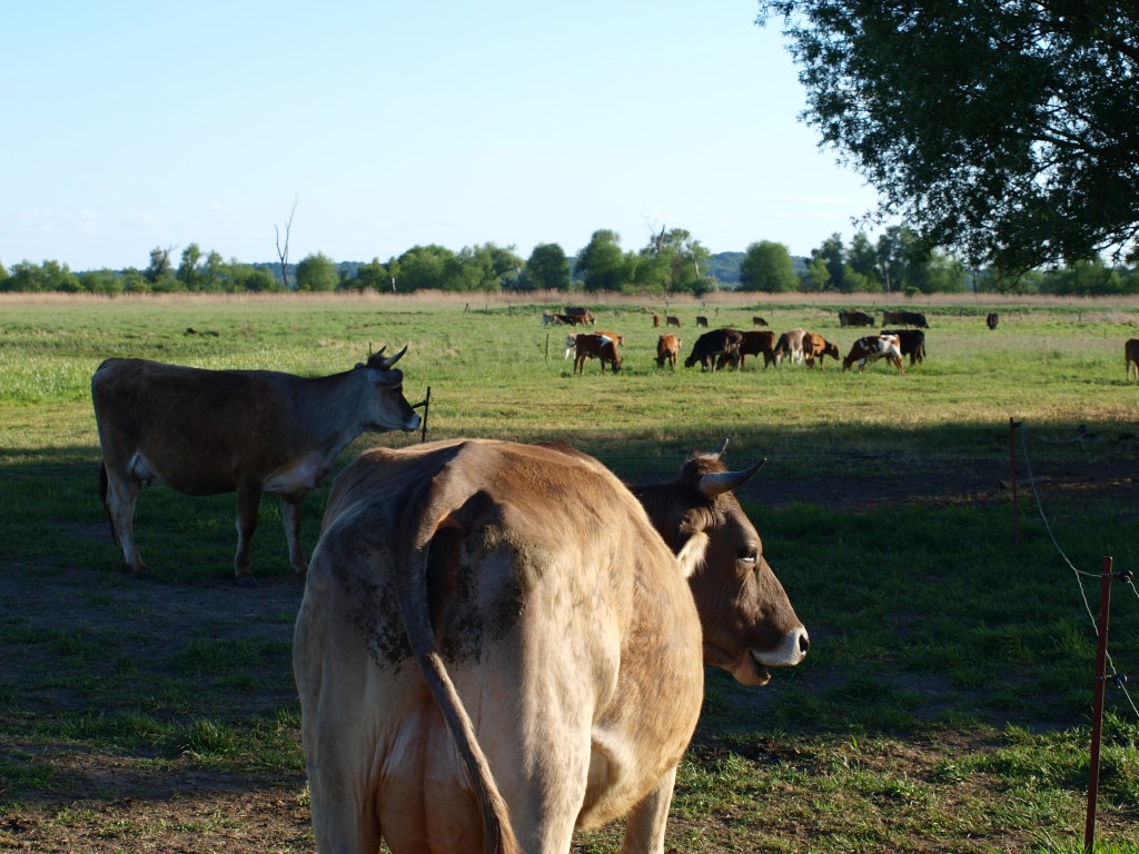 Aber wollen wir wirklich für ein bisschen Käse den Kühen ihre Kälber wegnehmen? Dass die dann tagelang schreien? Beide – Kuh und Kalb? Wollen wir, dass die Kälber stundenlang auf der Autobahn durch halb Europa transportiert werden? Anja Hradetzky macht es anders. Sie hat mich mitgenommen zum Melken auf der Weide im Nationalpark Unteres Odertal.