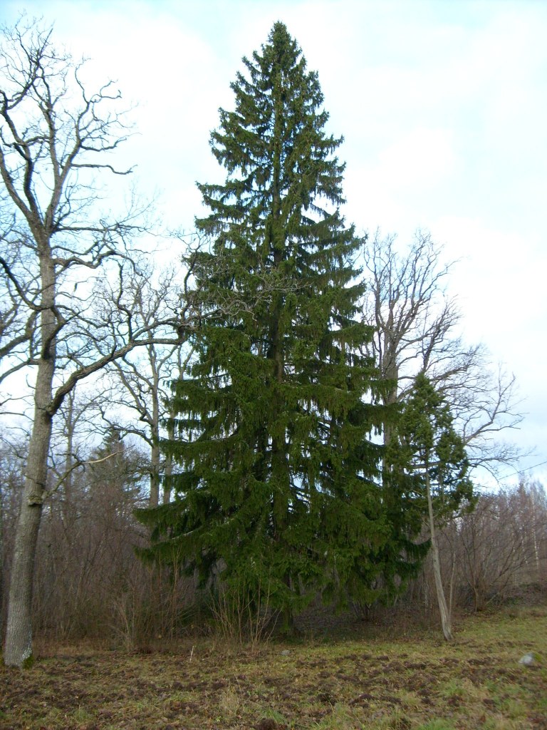 Die Fichte wurde aus Skandinavien eingeführt, weil man schnell wachsende gerade Stämme haben wollte. Wenn man sich ihre Form ansieht, die funktioniert wie ein Regenschirm: Wasser und Schnee fließen ab, weg vom Stamm – ideal für ein Klima mit langen, nassen Wintern.