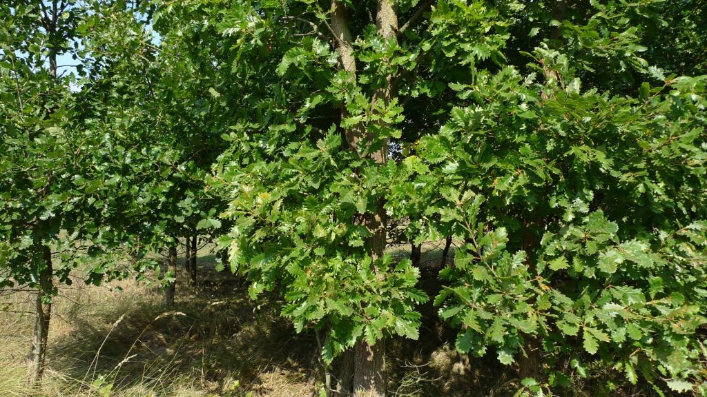 Die Eiche dagegen streckt ihre Äste wie einen Trichter nach oben, sammelt Regen und Licht und leitet es zum Stamm. Genauso machen es auch die Buchen.