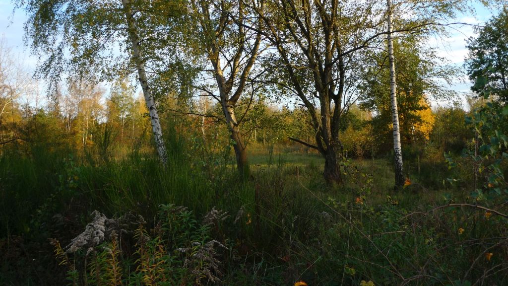 Im Waldlabor gibt es einen Teil, wo man das Land sich selbst überlassen hat. Den Acker hat man weder eingezäunt noch irgendwas gepflanzt oder gesät. Der Förster, bei dem ich hier mal eine Führung mitgemacht habe, meinte, es würde ihm ja oft in den Fingern jucken, was zu machen, weil auch Interessantes und Schönes wieder verschwindet, aber das Konzept ist, nicht einzugreifen und zu sehen, was von selber wächst. Das ist jetzt nach neun Jahren so dicht, dass man nicht reinkommt. Hier entsteht ein neuer Urwald.
