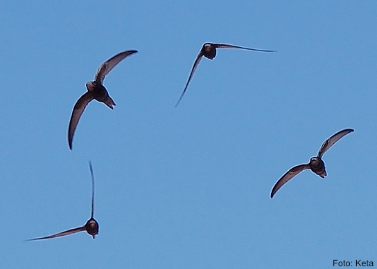 Mauersegler, die eleganten Kunstflieger. Immer um den ersten Mai herum, wenn ich ihre Schreie höre: das reinste Glück, dass jetzt der Sommer kommt. Und dann, Anfang August, wenn sie sich sammeln zur Winterreise: das Fernweh. Ich glaube, es sind weniger geworden. Aber kein Wunder, sie fressen ausschließlich Insekten. Vielleicht hatten sie auch mehr Platz für Nester unter unserem alten Dach. Wir haben spezielle Kästen für Mauersegler aufgehängt.
