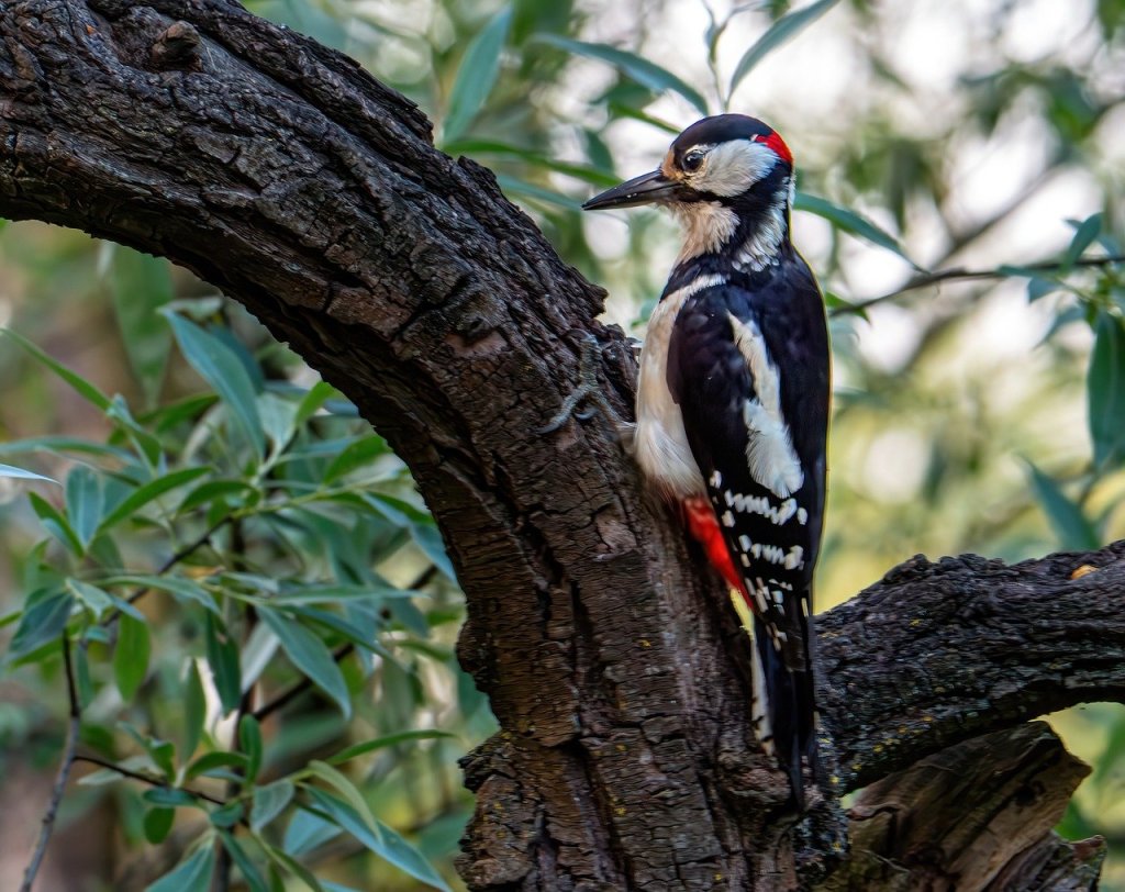 Seit ein paar Jahren kommen Spechte, die gab es hier früher nicht. Sie sitzen am Birnbaum und hacken auf der Rinde rum.